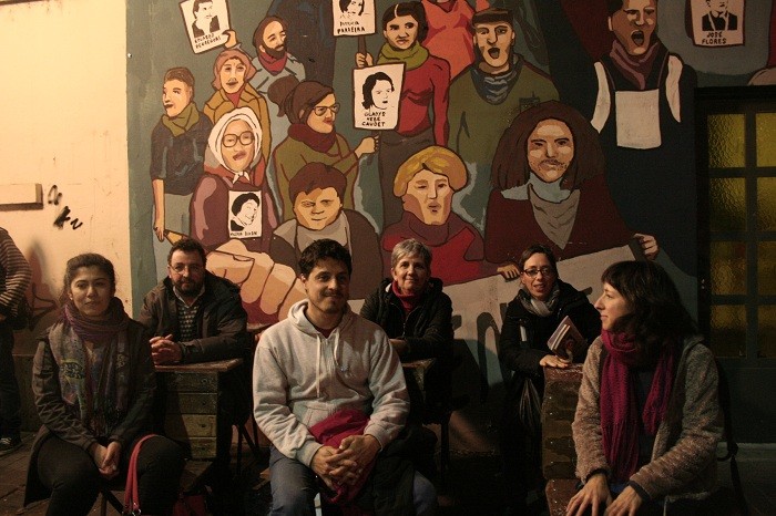 La actividad se llevó a cabo en Agustín Álvarez 1459 y culminó cuando los organizadores invitaron a los asistentes a sacarse una foto frente al mural. Para ello habían rescatado algunos pocos pupitres marrones que aún quedan en la escuela secundaria Nº 6 y los colocaron frente al mural.