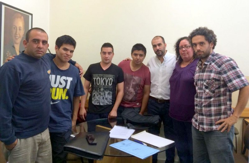 El concejal Joaquín Noya del Frente para la Victoria recibió en el Concejo Deliberante a los trabajadores despedidos de Menoyo, empresa radicada en el partido de Vicente López, tras las denuncias de agresiones físicas que recibieron por reclamar sus puestos de trabajo.