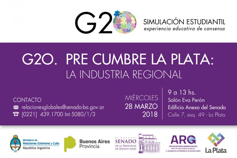 El 28 de marzo, de 9:00 a 13:00 hs, el Salón Eva Perón del edificio del Anexo del Senado provincial, se convertirá en escenario de la Pre Cumbre del proyecto “G20. Simulación Estudiantil. Experiencia educativa de consenso”.