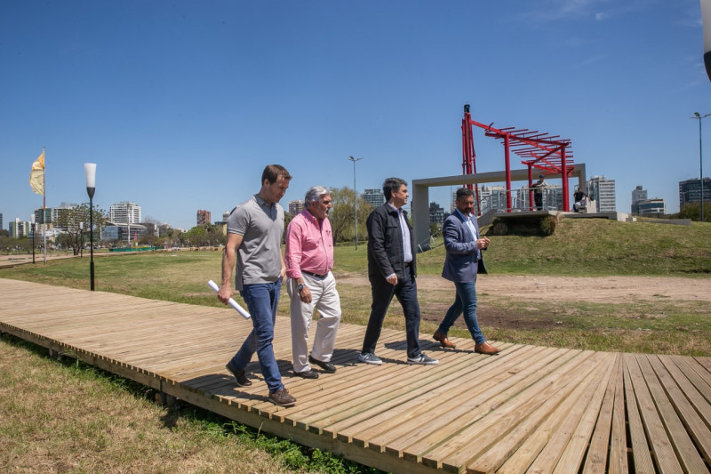 Respecto a la ejecución de una pasarela, se logró un recorrido continuo paralelo a la costa del Río de la Plata, que interconecta el Mirador Arenales y el Monumento del Fin del Milenio. De este modo, se busca acercar a los vecinos aún más a la costa con espacios rodeados por el verde del césped y los árboles.