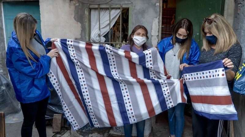 | Vecinas del barrio La Cava, en San Isidro, confeccionan sábanas y manteles y los donan para los centros de internación comunitaria para pacientes con Covid-19.   Ticiana La Monica, directora general de Acción Social del Municipio, contó: “Esto nació desde la articulación de promotoras sociales, el Municipio y vecinos de La Cava que ayudan cortando y cosiendo telas para centros de aislamiento. Ya entregaron más de 150 juegos de sábanas y más de 50 manteles”.   Los centros de internación comunitaria son lugares preparados para recibir pacientes con Covid-19 en el caso de que los casos aumentaran y descomprimir así los hospitales. El Municipio tiene actualmente tres centros y cada uno tiene  más de 200 camas. Están ubicados en Paraná al 3300, Martínez; Thames y Colectora; y el Sindicato Obrero de la Industria del Vestido y Afines (SOIVA). Además, hay 500 camas guardadas como para hacer otro centro de internación comunitaria en Espacio Darwin si fuera necesario.   Las vecinas Victorina Acevedo, que corta, y Fernanda Choque, que se ocupa de coser, se pusieron al frente de esta iniciativa. “En este aislamiento social poder colaborar de esta forma me da mucho placer. Es un gran trabajo en equipo”, señaló Victorina. |