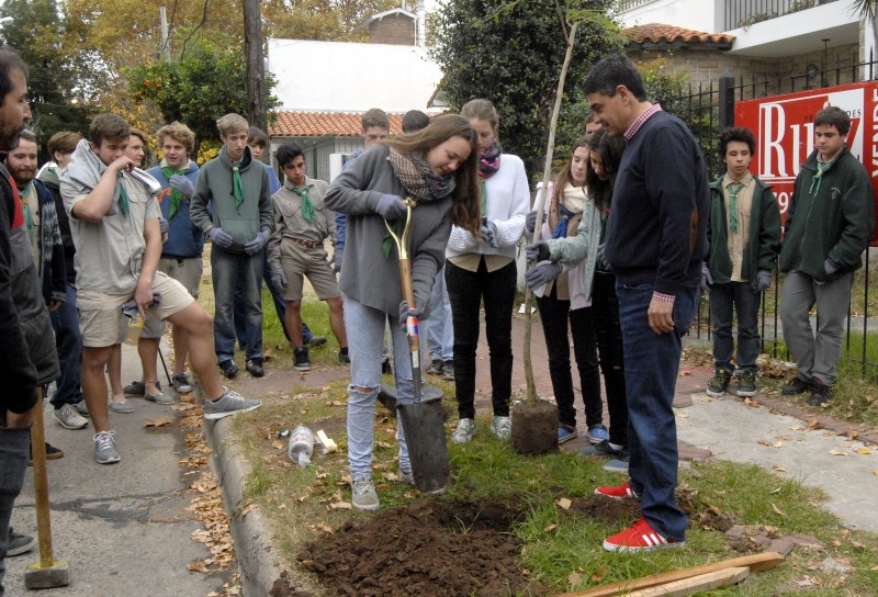 Siguiendo con la puesta en valor de los barrios, el intendente de Vicente López, Jorge Macri, acompañó al voluntariado de la Dirección de juventud y a los Scouts de la Comunidad Húngara a la plantación de árboles.